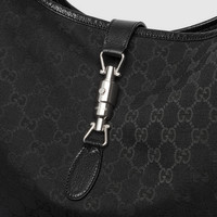 Introducing Spring Summer 2026. This new Gucci Jackie 1961 design is centered around the emblematic piston closure. Crafted from structured yet lightweight GG canvas, the style reveals tonal lining in the Diamante motif, taken from the archive. The bag can be carried over the shoulder, or crossbody with the detachable strap. This style is featured in the "Pesantone" look of La Famiglia. - Black GG canvas - Black soft leather trim - Silver-toned hardware - Black canvas lining with Diamante motif - Inside: 1 zip pocket - Detachable and adjustable leather shoulder strap with 21.6" drop; length 40.9" - 44" - Piston closure - 15.7"W x 11.4"H x 1.9"D - Weight: 2lbs, approximately - Made in Italy - Fits an iPad, A4 notebook, iPhone Plus and small items