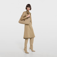 Introducing Spring Summer 2026. This new Gucci Jackie 1961 design is centered around the emblematic piston closure. Crafted from structured yet lightweight GG canvas, the style reveals tonal lining in the Diamante motif, taken from the archive. The bag can be carried over the shoulder, or crossbody with the detachable strap. This style is featured in the "Cocco di Mamma" look of La Famiglia. - Sand and dark brown GG canvas - Dark brown soft leather trim - Gold-toned hardware - Sand canvas lining with Diamante motif - Inside: 1 zip pocket - Detachable and adjustable leather shoulder strap with 21.6" drop; length 40.9" - 44" - Piston closure - 15.7"W x 11.4"H x 1.9"D - Weight: 2lbs, approximately - Made in Italy - Fits an iPad, A4 notebook, iPhone Plus and small items