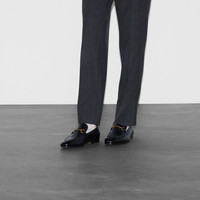 The leather loafer is designed with an elongated toe and finished by the House's signature Horsebit detail—an homage to Gucci's equestrian roots. - Blake construction - Black leather - Horsebit detail - Leather sole - Flat - .4" heel - Made in Italy