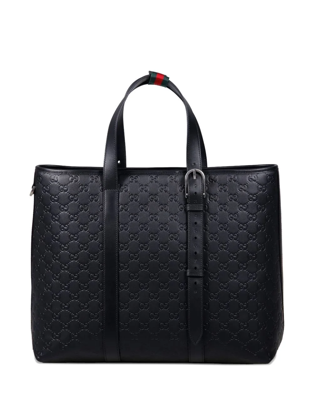 embossed buckle tote bag Highlights - Black - Leather - Embossed pattern - Top handles - Buckle detail - Adjustable straps Made in Italy Composition Outer: Calf Leather 100%