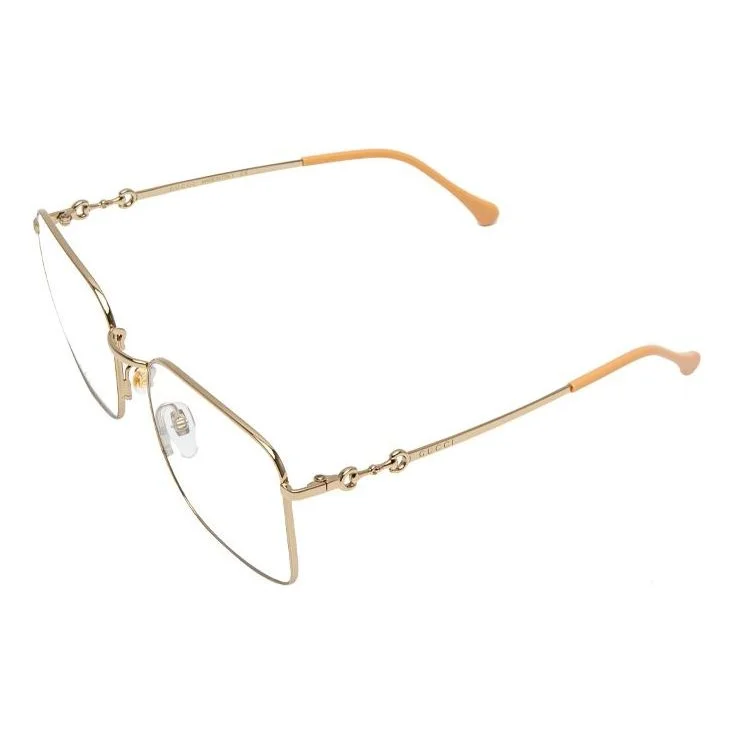 Gucci Metallic Horsebit Retro Minimalistic Frame Pink Lens Gold Color Square Unisex GG0951O-001