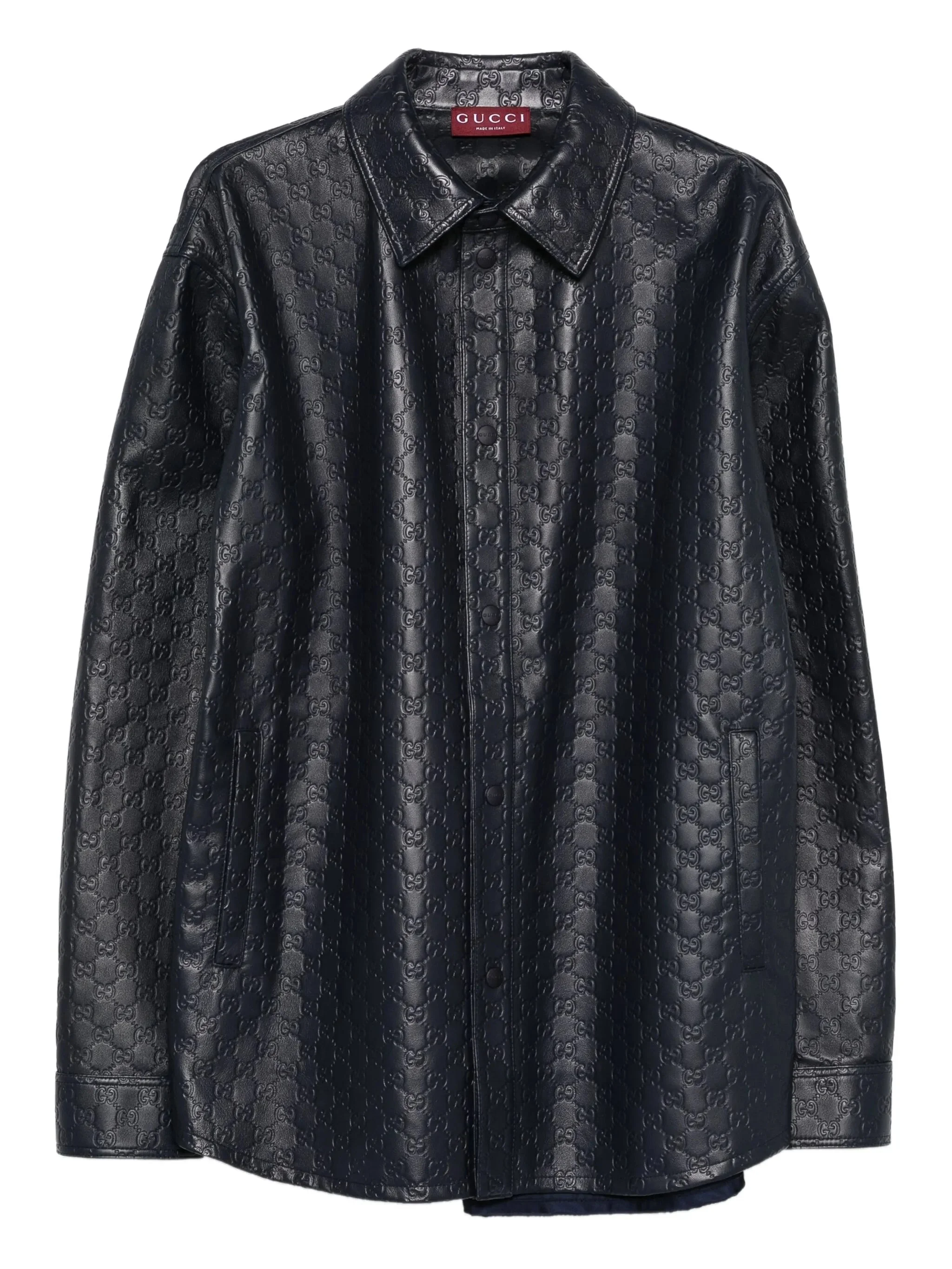 dark blue monogram pattern button fastening long sleeves collared neck - Color: BLUE - Made in: Italy - Designer Style ID: 833460 XNA73 4139 Composition and care Outer Composition Polyamide: 100.0%, Outer Composition Polyurethane: 100.0%, Outer Composition Lambskin: 100.0%
