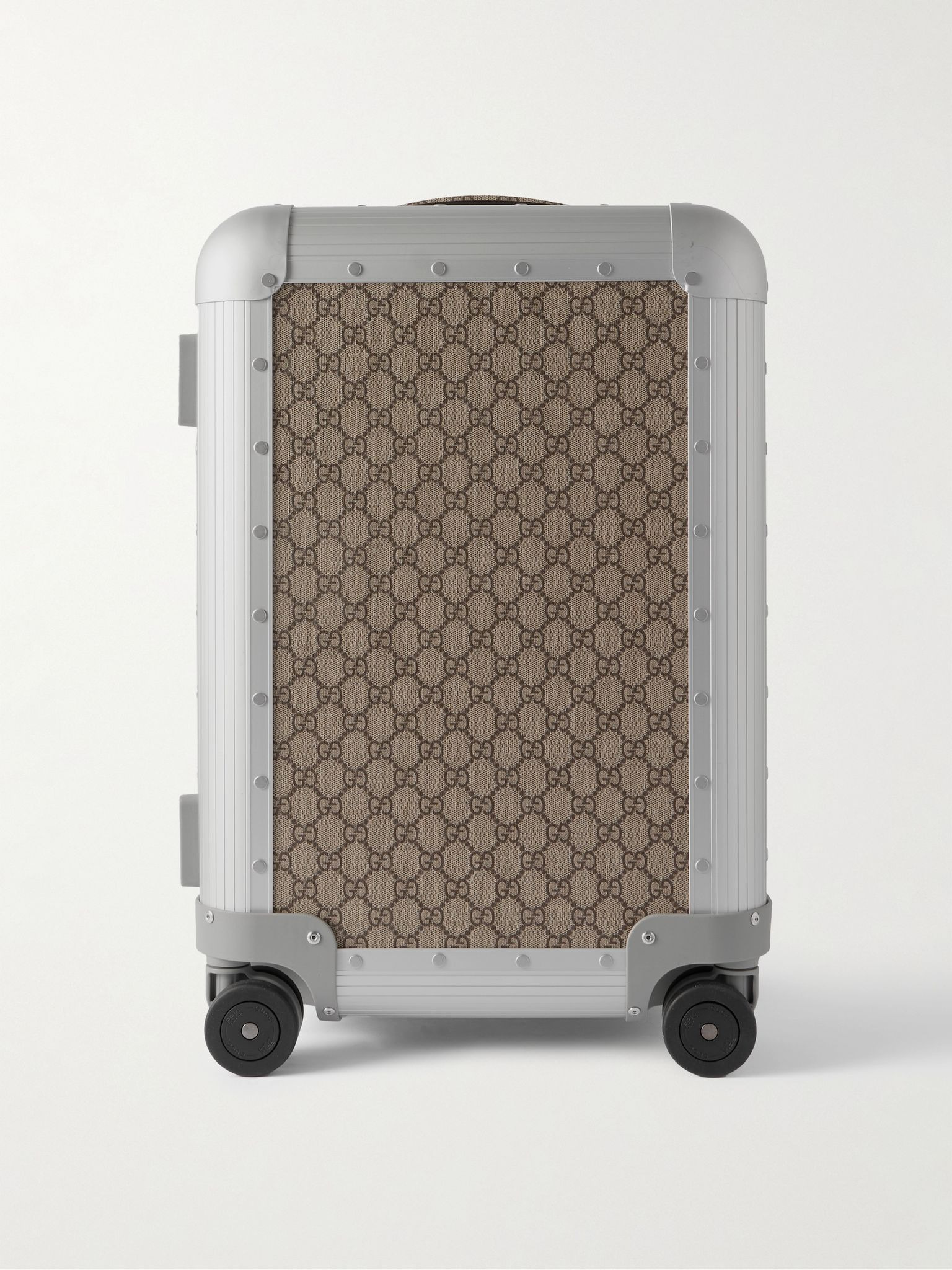Gucci has a way with luggage - its founder began as a porter at the Savoy Hotel. Designed in collaboration with FPM Milano, this carry-on suitcase is made from monogrammed coated-canvas trimmed with silver-tone aluminium. It has a telescopic handle and 360-degree wheels, so it's great for transit. Details & Care - Aluminium, tonal-brown coated-canvas - Top and side handles, telescopic handle - Retractable luggage tag, four wheels - Two internal dividers, four leather straps, zipped pocket - Fully lined - Combination and butterfly lock fastening, two combination padlocks - Weighs approximately 5.0kg/ 11.0lbs