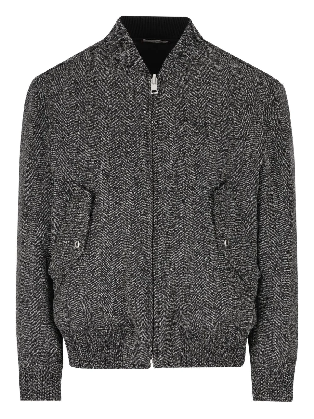 herringbone zip-up jacket Highlights - Grey - Herringbone-pattern - Ribbed collar - Ribbed cuffs - Ribbed hem - Side-pockets - Zip-fastening Made in Italy Composition Wool 100% Washing instructions Read Manufacturer Guidelines