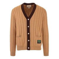 Gucci Rib Knit Wool Cardigan With Gucci Label 'Camel' 646809-XKBQT-2668
