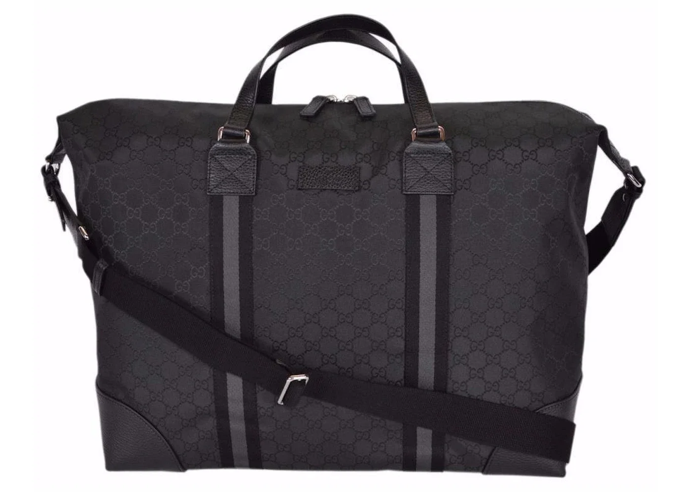 Please Note: This item comes with a dust bag, the box is not required. - Dimensions 14.5H 18W - Material Nylon - Retail Price 1895 - Color Black - Hardware Silver-tone - Included Accessories Strap - Base Model Duffle - Base Model Variety Travel - Color Generic Black - Featured false - Height 14.5 - Interior Color Black - Pattern Monogram GG - Styles Tote,Shoulder Bag - Width 18