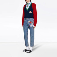 Gucci V-neck Wool Sweater With Lyre 'Blue' 575504-XKATG-4278