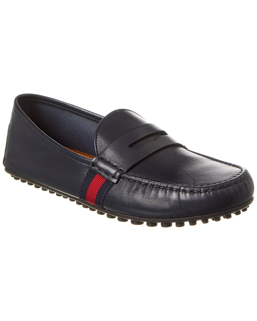 - About the brand: Eclectic and coveted. Italian luxury redefined. - Please note: Size selections are UK. For US conversions, please reference size chart. - Made in Italy - Web Leather Driver in navy leather with penny strap, red and blue signature webbing stripe and flexible sole - Smooth leather insole - Man-made sole - Our products are 100% genuine. In some cases we purchase merchandise from trusted independent suppliers and not directly from the brand owner. In all cases we stand by the authenticity of every product sold on our site.