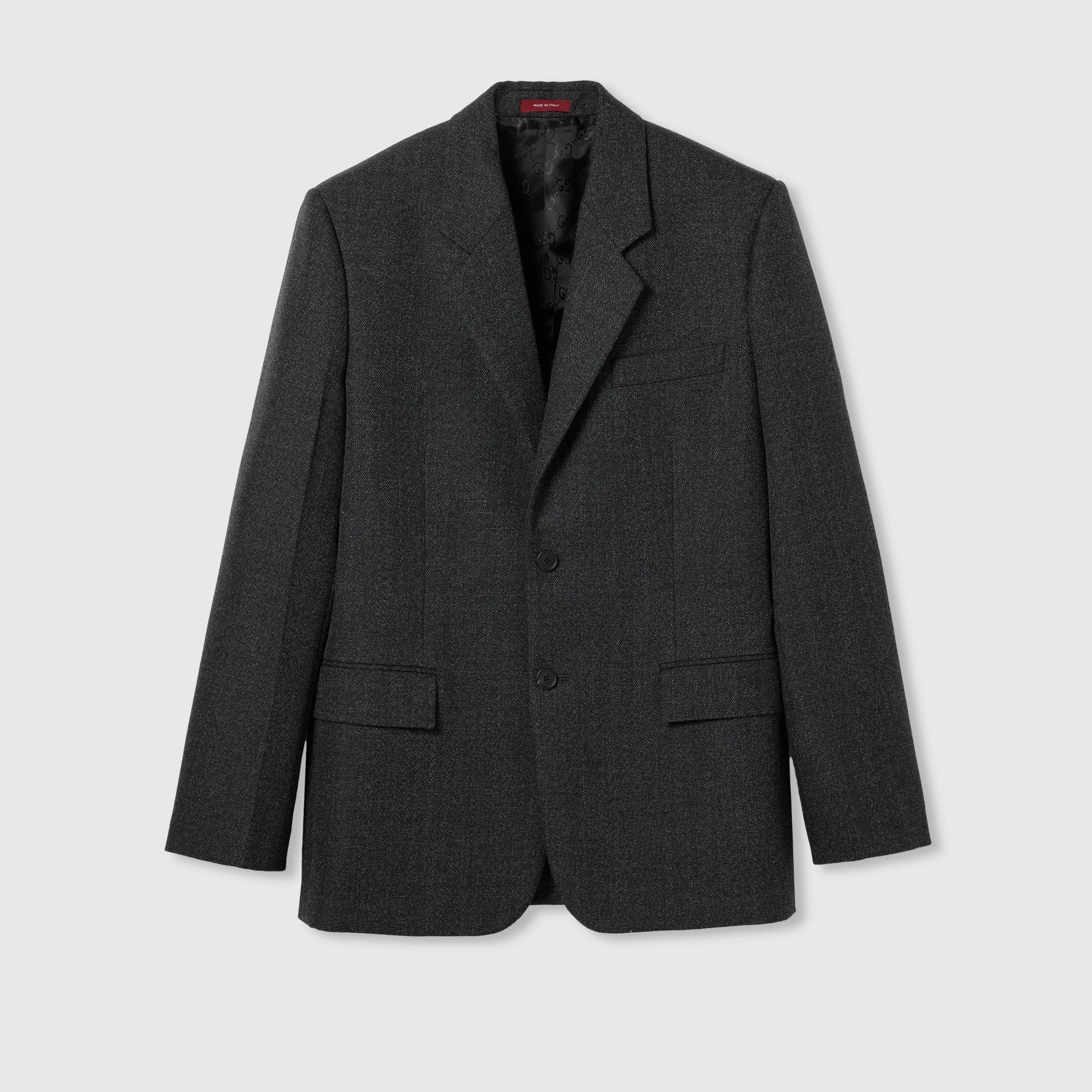 In the Fall Winter 2025 collection, essential lines define the silhouette through refined fabrics and classic British tailoring codes. This single-breasted jacket features a notch lapel, flap pockets and a chest welt pocket. Fully lined, the style is constructed with a full canvas for elevated structure. - White and black herringbone wool mouline - Fully lined - Notch lapel - Single-breasted - Full canvas construction - One chest welt pocket - Two front flap pockets - Regular fit - Total length: 29.5"; Shoulder: 17.7"; Chest: 20.8"; Sleeve length: 25.9"; (size 46 IT)