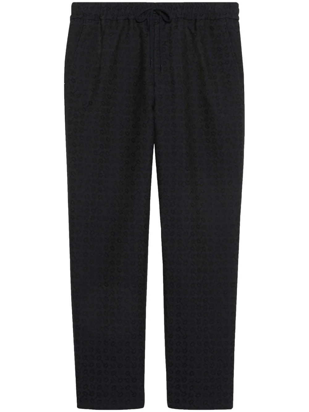 Horsebit-jacquard drawstring trousers midnight blue cotton-wool blend patterned jacquard signature Horsebit detail elasticated drawstring waistband straight leg two side inset pockets two rear patch pockets Made in Italy Composition Cotton 70%, Wool 30% Washing instructions Read Manufacturer Guidelines