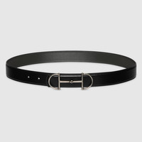 In the Fall Winter 2025 collection, this reversible belt embodies Gucci’s heritage with a detachable silver-toned Horsebit buckle. Crafted from black and dark grey leather, the design offers an elegant yet effortless aesthetic. - Black leather on the one side, dark grey leather on the other - Silver-toned hardware - Detachable Horsebit buckle - 1.1" width - Made in Italy - Can be worn as a hip or waist belt. Sizing will differ based on where the belt is worn, please refer to the size guide to find your size.