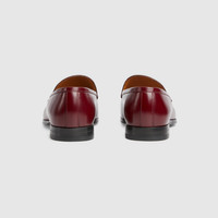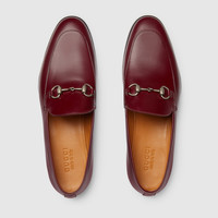 Defined by an elegant silhouette, this man's loafer is crafted in refined leather and is completed by the iconic Horsebit with a silver finish. - Gucci Rosso Ancora red leather - Men's - Silver-toned hardware - Leather sole - Flat - Height: 0.5" - Made in Italy