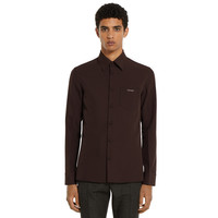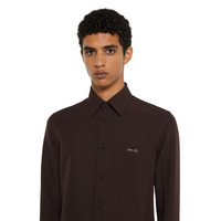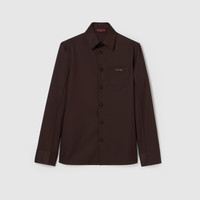 In the Fall Winter 2025 collection, Gucci's classic codes meet a streamlined silhouette. This slim fit shirt is enriched by a metal Horsebit detail on the chest pocket. The style is completed by a concealed button closure, point collar and long sleeves. - Dark brown polyester twill - Point collar - Long sleeves - Chest pocket with Horsebit - Regular fit - Total length: 28.3"; Shoulder: 17.9"; Chest: 20"; Sleeve length: 25.9"; Neck width: 15.9" (size 46 IT)