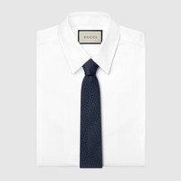 In the Fall Winter 2025 collection, this tie is presented in a Horsebit silk jacquard, celebrating the House's equestrian roots. A Gucci embroidery completes the piece. - Navy Horsebit silk jacquard - Gucci embroidery - Gucci bee label on the back - 2.75”W x 57.5”L