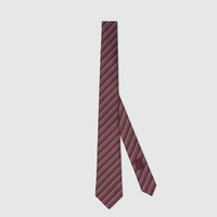 The Pre-Fall 2025 collection explores fresh interpretations of signature symbols and codes of the House. This tie is stated in a Horsebit silk jacquard, highlighting Gucci's rich equestrian heritage. - Bordeaux Horsebit silk jacquard - Gucci bee label on the back - 2.75”W x 57.5”L - Made in Italy