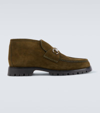 Gucci's collections are both a reflection of the past and a glimpse into the future. Made in Italy from green suede, these ankle boots are adorned with a silver-toned rendition of the brand's iconic Horsebit motif. Product Details - Upper: leather (suede) - Lining: leather - Sole: leather insole, rubber sole - Toe shape: round toe - Made in Italy - Includes: shoe box, dust bag - Designer color name: Luscious Green - Item color: green - Hardware color: silver - Item number: P01078867 Size & Fit - True to size - UK sizes