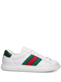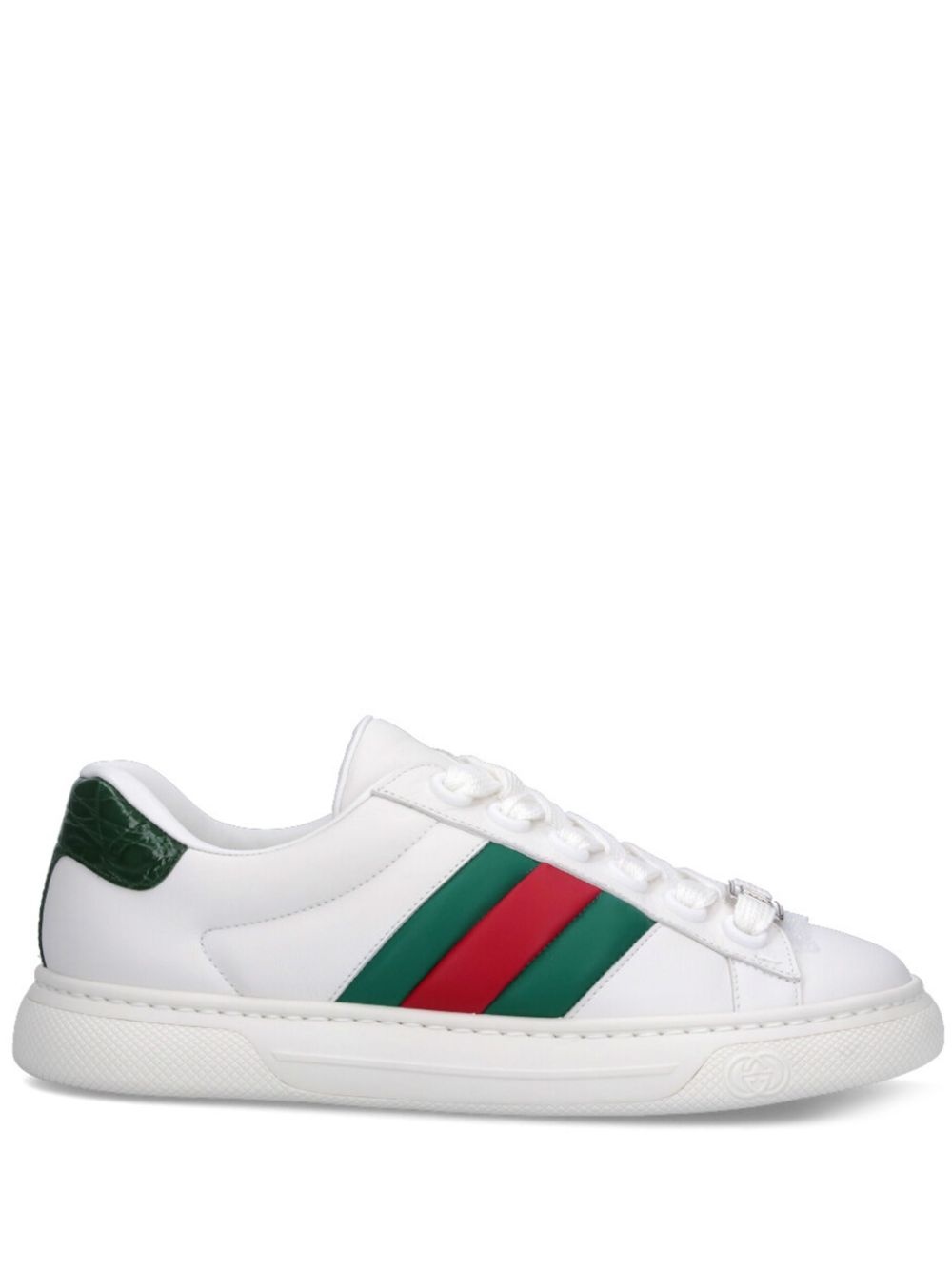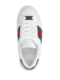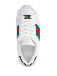 Ace sneakers Highlights - White/multicolour - Calf leather - Round toe - Front lace-up fastening - Logo plaque - Signature gucci stripes to the side - Logo print to the rear - Rubber sole Made in Italy Composition Outer: Calf Leather 100% Sole: Rubber 100% Lining: Fabric 100%
