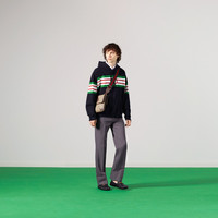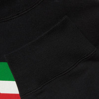 A playful take on House codes, green, red and white stripes reminiscent of the classic Web combine with the Interlocking G logo atop this black felted cotton jersey hooded sweatshirt, specifically washed for a vintage effect. - Washed black light felted cotton jersey - Green, red and white stripes with Interlocking G print - This product contains organic cotton where the cultivation and manufacturing process restrict the use of chemicals, eliminate pesticides or artificial fertilizers and incorporate methods that respect biodiversity, improve soil quality, and reduce water consumption. - Fixed hood with drawstring closure - Long sleeves - Ribbed hem and cuffs - Made in Italy - The model is 6' and is wearing size small