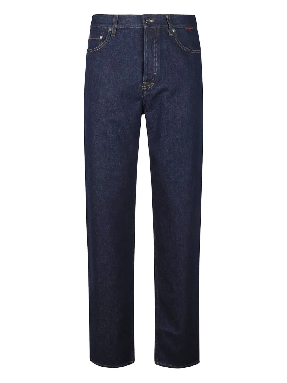 logo-patch jeans Highlights - Blue - Leather logo patch - Five-pockets - Button fastening - Belt loops - Zip fastening Made in Italy Composition Cotton 100% Washing instructions Read Manufacturer Guidelines