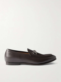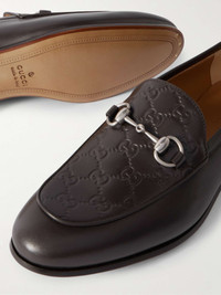 Gucci's 'Jordy' leather loafers feature two of the house's signatures - the silver-tone horsebits and monograms debossed on the aprons. Style them with bright socks or a plain white pair. Size & Fit - Fits true to size. Take your normal size - UK sizing Details & Care - Dark-brown leather (Calf)
