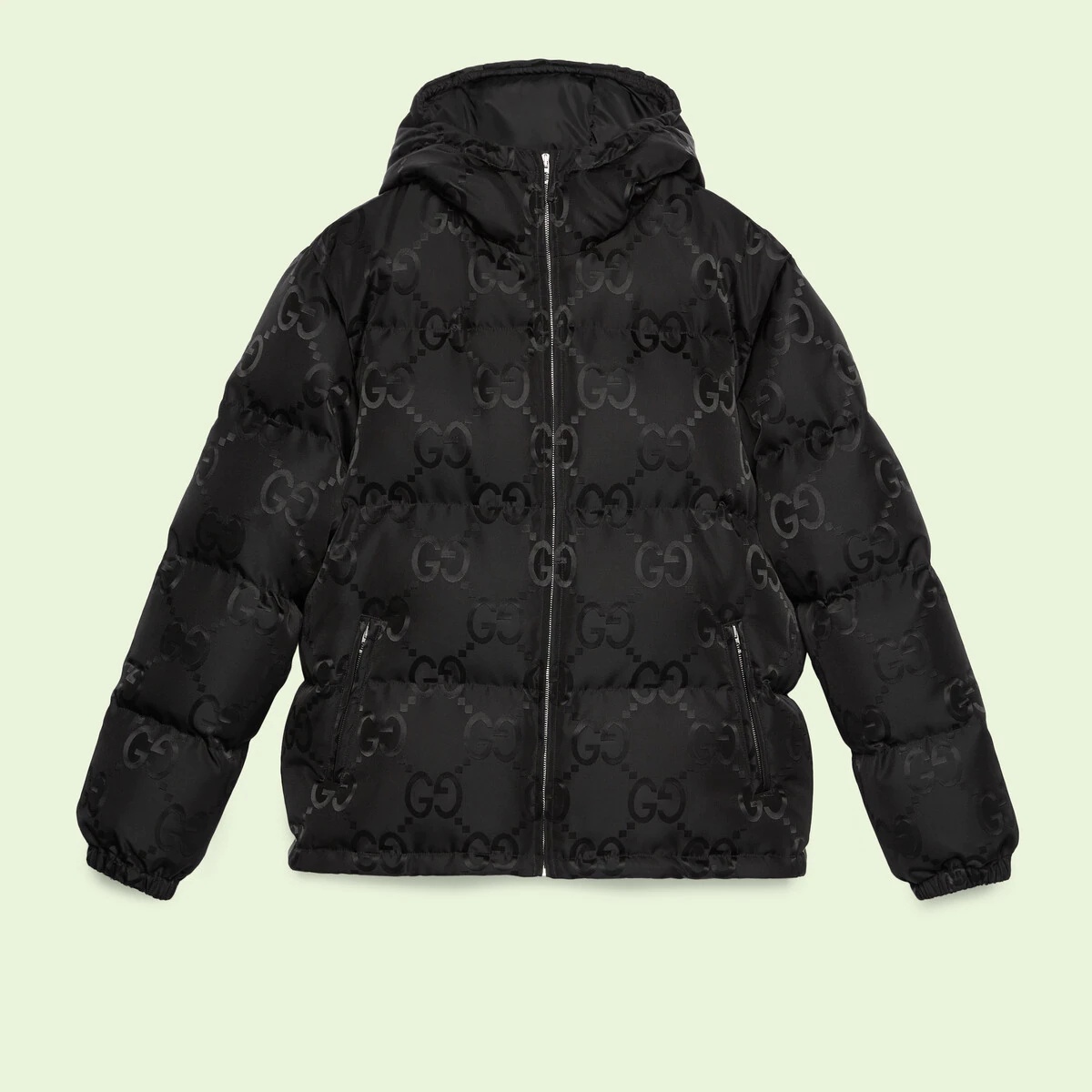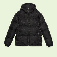 Instantly recognizable emblems of the brand, logos enrich designs in new and unexpected ways. Behind every logo lies the tradition and value of the House, an everlasting medium one can wear again and again. Following the idea of constant change and experimentation, different iterations of the logo have been presented each collection. The jumbo GG, a new, maximalist version of the historic monogram, animates a selection of ready-to-wear and accessories like this padded canvas jacket. - Black jumbo GG nylon canvas - With padding - Front pockets - Front zip closure - Hood with zip pocket - Made in Italy - The product shown in this image is a size 48 (IT)