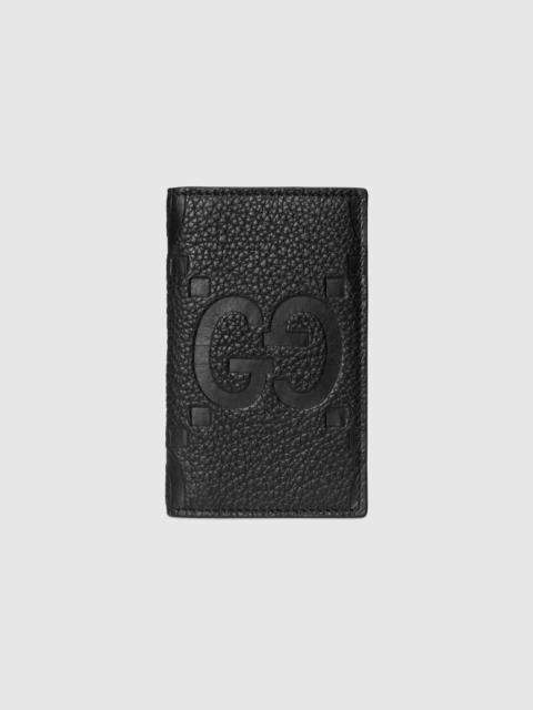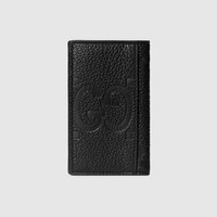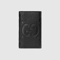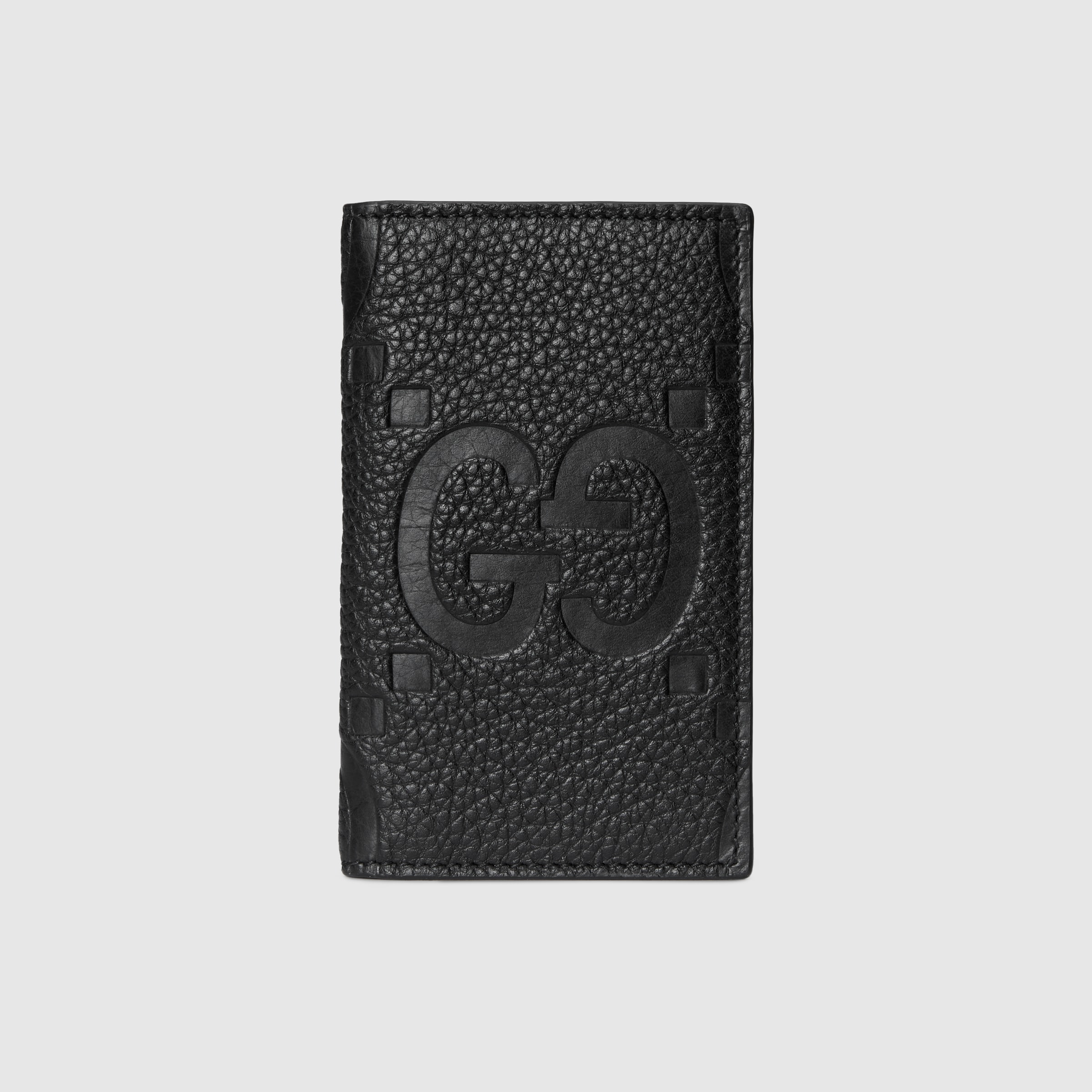 The all-black jumbo GG design returns for Pre-Fall 2023 atop a selection of small leather pieces. A reinterpretation of Guccio Gucci's initials, the motif is an evergreen of the House that appears prominently in maxi size for an eye-catching logo feel. Here the emblematic leather defines this eight slot card case. - Black jumbo GG leather - Moiré lining - Inside: 8 card slots - Open: 5.9"W x 4.7"H - Closed: 3"W x 4.7"H - Made in Italy - Weight: 0.13lbs approximately