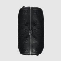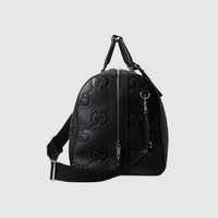 A reinterpretation of Guccio Gucci's initials, the jumbo GG motif is an evergreen of the House that appears in maxi-sized dimensions for an eye-catching logo feel. The all-black variation of the emblem defines this large duffle bag. - Black jumbo GG leather - Black leather trim - Cotton linen lining - Detachable identification tag, key holder and lock - Inside: 2 zip pockets - Top handle with 3.9" drop - Adjustable canvas shoulder strap with 19.7" drop - Zip closure - Weight: 7.5lbs approximately - 20.5"W x 13.4"H x 11.4"D - Made in Italy