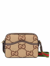 GG Supreme crossbody bag The GG supreme canvas that is most loved by Gucci has been enlarged here on this messenger crossbody bag. Designed in the classic camel and ebony colourway with leather trim, the piece is finished with the fashion houses iconic red and green stripe on the detachable shoulder strap. Made in Italy Composition Lining: Cotton 100%, Linen/Flax 100% Outer: Canvas 100% Trims: Leather 100% SIZE & FIT Measurement DEPTH 2.4 in(6 cm) HEIGHT 7.9 in(20 cm) STRAP 25.2 in(64 cm) WIDTH 10 in(25.5 cm)
