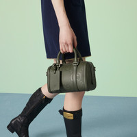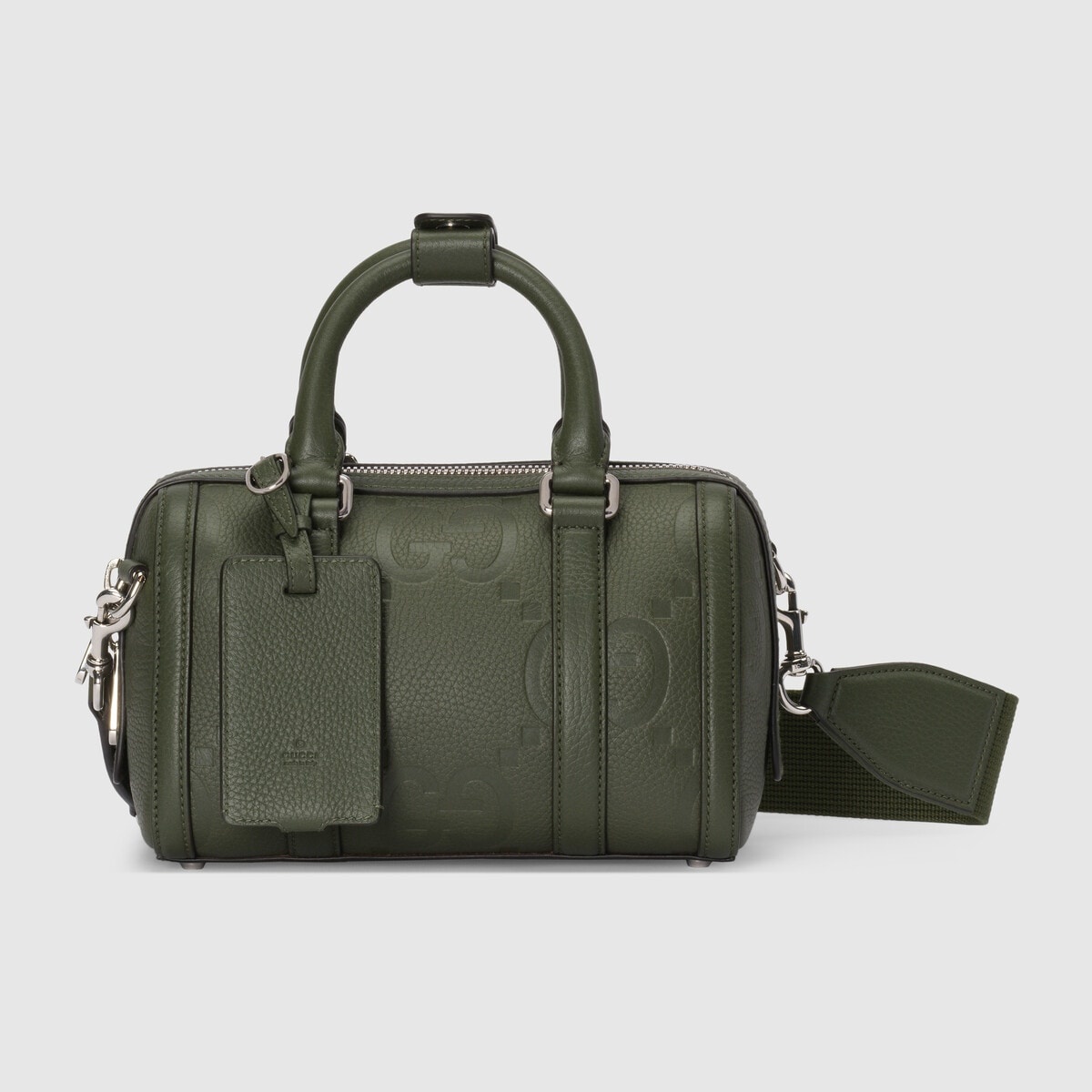 Working with a range of nature's primary colors, Gucci's enduring designs present new iterations season after season. For Pre-Fall 2023, dark green enriches the latest leather goods selection with a neutral shade that works harmoniously with other colors. This mini duffle bag portrays the shade as part of an emblematic jumbo GG leather. - Dark green jumbo GG leather - Cotton linen lining - Removable luggage tag - Handle with 3.5" drop - Adjustable shoulder strap with 18.5" drop - Zip closure - Weight: 2lbs approximately - 8.6"W x 5.9"H x 4.9"D - Made in Italy