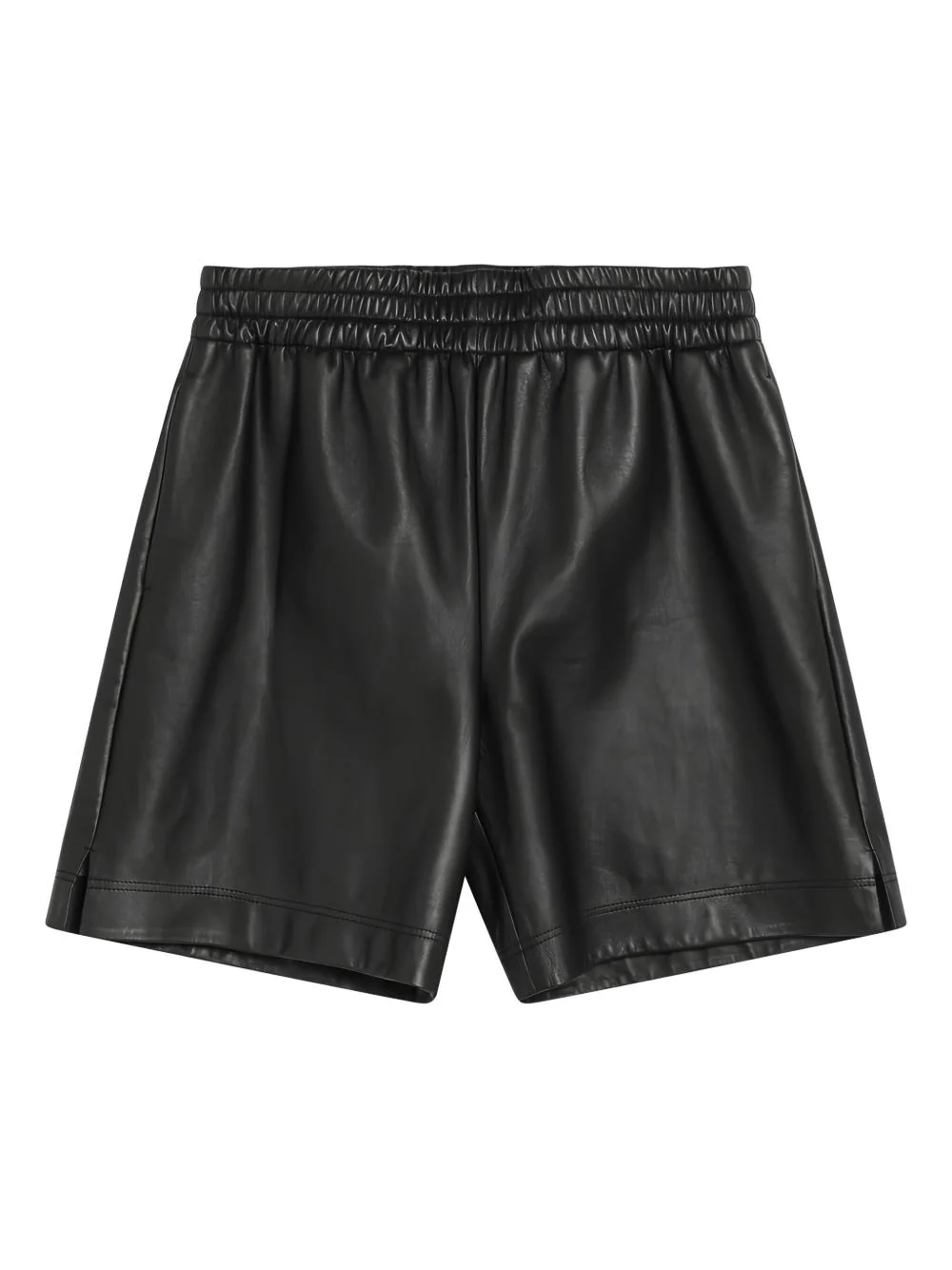 leather shorts Highlights - Black - Elasticated waistband - Back patch pocket - Embossed logo Made in Italy Composition Leather 100% Washing instructions Read Manufacturer Guidelines