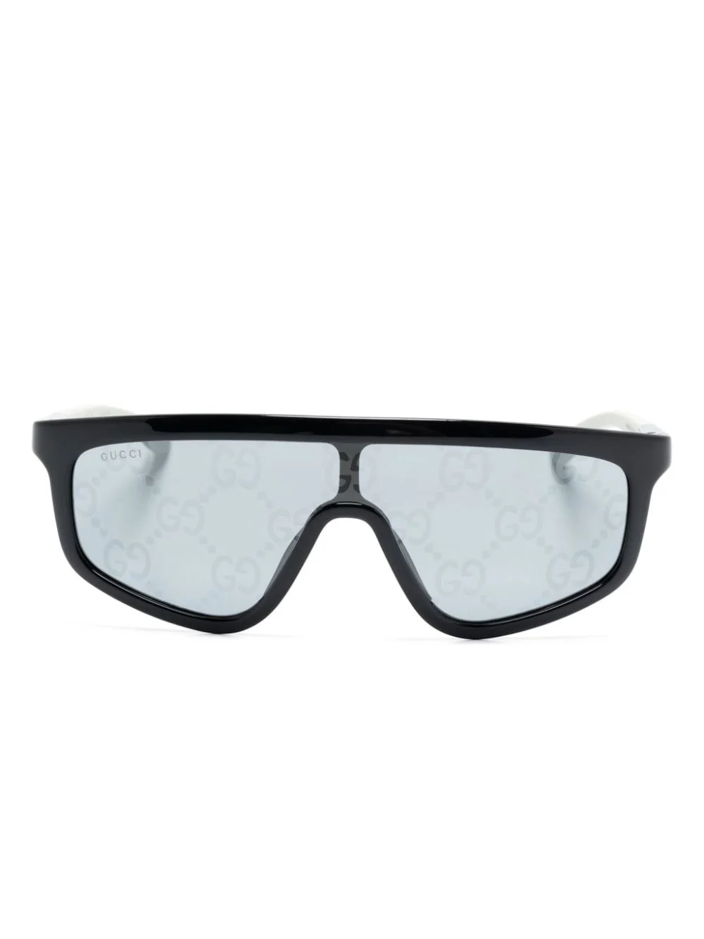 lens-decal shield-frame sunglasses Highlights - Black/grey - Acetate - Lens decal - Logo print at the arm - Shield frame - Grey tinted lenses - Uv-protective lenses - Straight arms - Curved tips - These glasses come with a protective case. Made in Italy Composition Acetate 100% SIZE & FIT Measurement Arm Length 5.31 in(13.5 cm) Bridge Width 0.39 in(1 cm) Lens Diameter 3.89 in(9.9 cm) Total Width 5.9 in(15 cm)