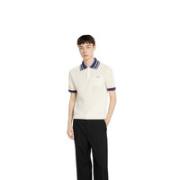 The Pre-Fall 2025 collection spotlights essential silhouettes with emblematic details from daywear to eveningwear. This polo T-shirt is made from cotton piquet knit and decorated with a Gucci intarsia. - Ivory and blue cotton piquet knit - Stripe trim - Gucci intarsia - Polo collar - Short sleeves - Button closure - Made in Italy