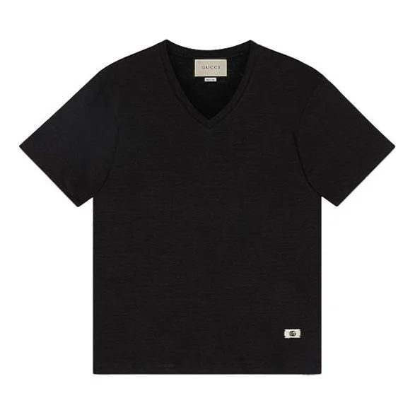 A recurring detail of this collection, the Double G label adds a subtle logo connotation to this V-neck T-shirt, crafted from black linen jersey. A message about leaving fashion’s old rules behind, the Epilogue collection conveys the idea that pieces should be timeless–not just in fashion for one season. - Black linen jersey - Front Double G label - V-neck - Short sleeves - Made in Italy - The product shown in this image is a size medium