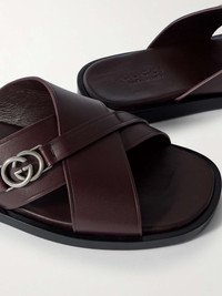 Gucci's sandals will work just as well with Bermuda shorts or relaxed tailoring. Designed with contoured footbeds, they've been made in Italy from dark-brown leather and have crisscrossed, logo-embellished straps. Size & Fit - Fits true to size. Take your normal size - UK sizing Details & Care - Dark-brown leather (Calf)