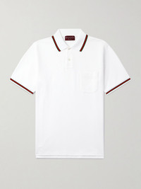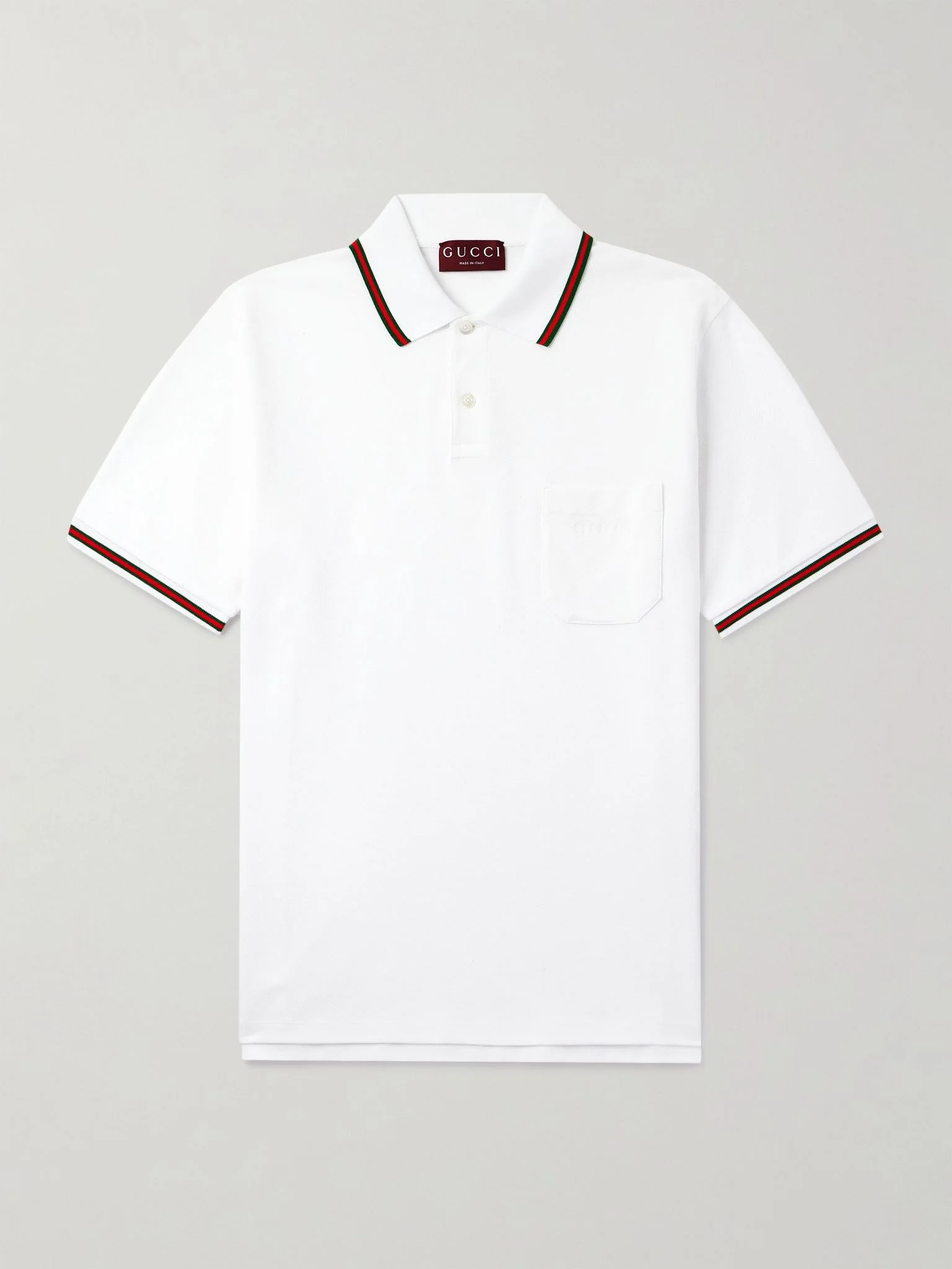 Gucci's polo shirt is designed with subtle details, like an embroidered moniker on the chest pocket and webbing-inspired stripes. It's cut from breathable cotton-pique and fastens with lustrous mother-of-pearl buttons. Size & Fit - Fits true to size. Take your normal size - Designed for a slightly loose fit - Mid-weight, slightly stretchy fabric - Model is shown wearing a M - Model measures: chest 38"/ 96cm, height 6'0"/ 183cm Details & Care - White, green and red cotton-pique - Button fastenings - 97% cotton, 3% elastane - Mother-of-pearl: Australia