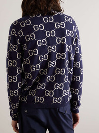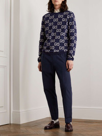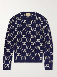 There'll be no doubting your allegiance to the house of Gucci when you wear this sweater. It's been made in Italy from wool and jacquard-knitted all-over with the iconic 'GG' motif. Size & Fit - Model wears a size larger to achieve a looser fit - Mid-weight knit - S/M/L sizing Details & Care - Blue and ivory wool - 100% wool - Dry clean