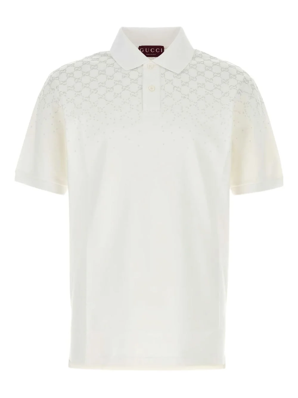 logo piquet polo shirt Highlights - White - Logo pattern - Button fastening - Short sleeves - Piquet knit Made in Italy Composition Cotton 97%, Lycra 3% Washing instructions Read Manufacturer Guidelines
