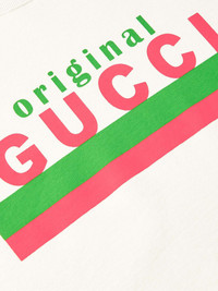 In past seasons Gucci has riffed on knockoff logos, but there's no doubt that the one on this sweatshirt is 'original'. It's been made in Italy from loopback cotton-jersey and features the label's distinctive red and green stripes. Size & Fit - Fits true to size - This sweatshirt is designed for a relaxed fit - Mid-weight, slightly stretchy fabric - Model takes a S but is wearing a M to achieve an oversized fit - Model measures: (S, IT 46, UK/US 36) chest 36"/ 92cm, height 6'1"/ 185cm Details & Care - Ivory, green and red loopback cotton-jersey - 100% cotton - Hand wash