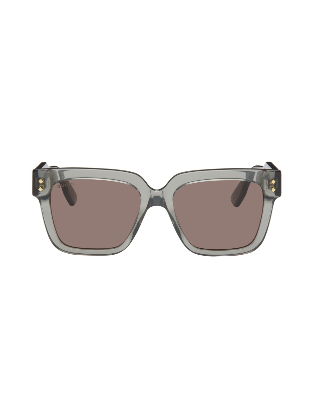 Square semi-transparent acetate-frame sunglasses in gray. · Brown lenses with 100% UVA/UVB, Category 3 · Integrated nose pads · Logo etched at temples · Exposed core wire · Hardside case included · Size: 54.18 145 Supplier color: Grey/Grey/Brown