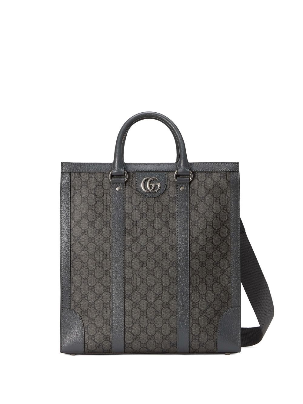 Ophidia tote bag from Gucci featuring grey, GG Supreme canvas, leather trim, signature Double G logo, two rolled top handles, adjustable detachable shoulder strap, lobster claw fastening, main compartment, internal zip-fastening pocket, internal slip pocket, metal feet and silver-tone hardware. DETAILS Composition T POLYURETHANE 60% T COTTON 20% T POLYESTER 20% Model ID 731793-UULHK8576