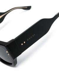 logo square-frame sunglasses black logo print at the arm square frame tinted lenses straight arms curved tips These glasses come with a protective case. Made in Italy Composition Acetate 100% SIZE & FIT Measurement Arm Length 5.7 in(14.5 cm) Bridge Width 0.78 in(2 cm) Lens Diameter 2.12 in(5.4 cm) Total Width 5.9 in(15 cm)