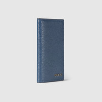 A selection of small leather accessories featuring the Gucci logo return for Pre-Fall 2025. Crafted from blue grainy leather, this long card case features multiple card slots and hidden compartments. - Blue grainy leather - Palladium-toned hardware - Blue moire lining - Gucci logo - Inside: 8 card slots, 2 hidden compartments - Outside: 1 card slot - Open: 5.9"W x 4.7"H - Closed: 3"W x 4.7"H - Made in Italy - Weight: 0.14lbs approximately
