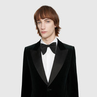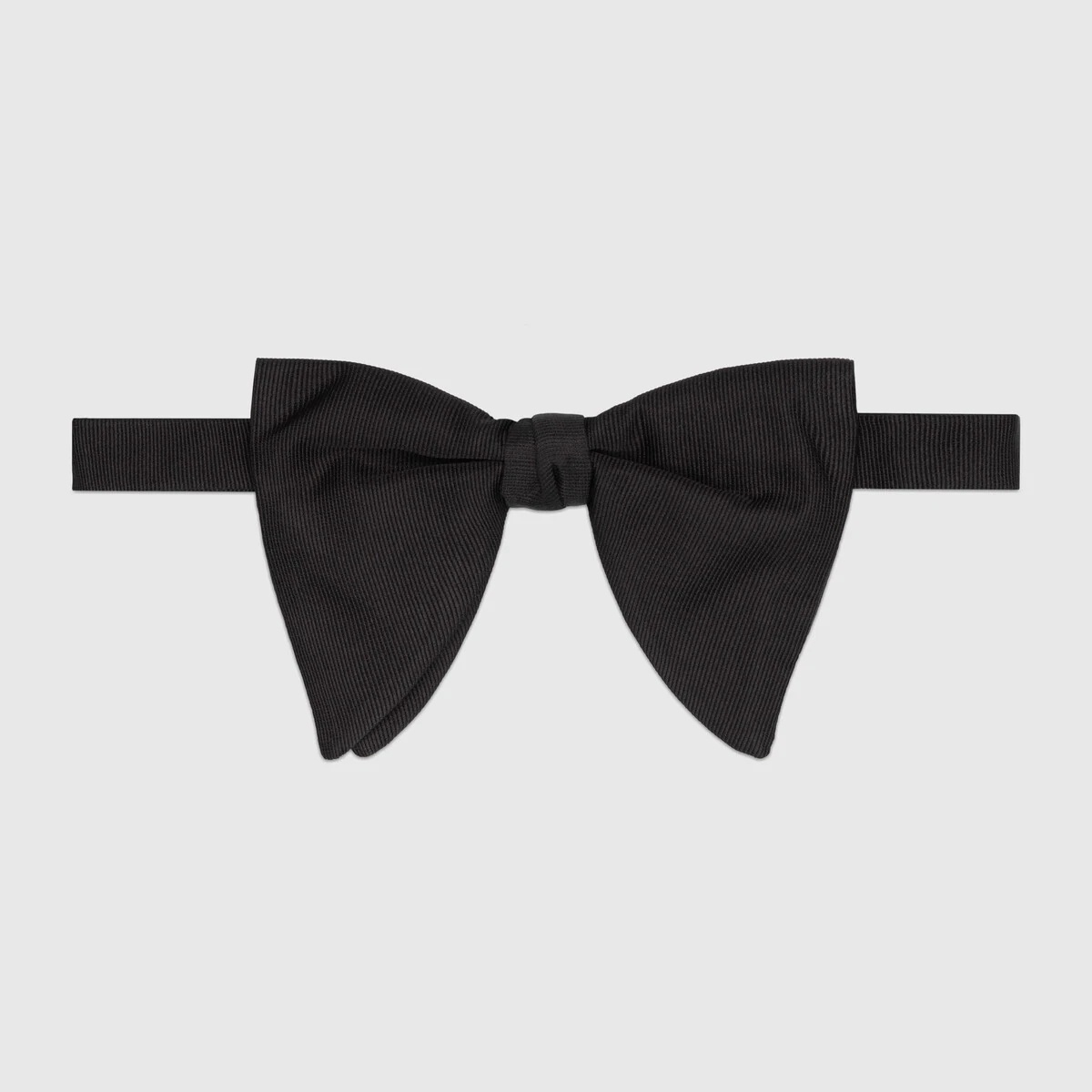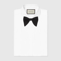 A bow tie with elongated points, made in silk faille. Classic tailoring elements continue to enhance the latest Gucci collections. - Black silk - Ships pre-tied with adjustable back closure - Made in Italy