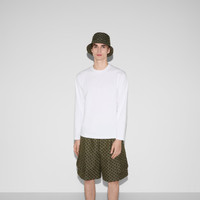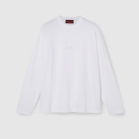 Gucci's House codes continue to evolve for the new season across jersey pieces. This long-sleeved T-shirt is presented in heavy cotton jersey and enriched with a Gucci embroidery. - White heavy cotton jersey - Gucci embroidery - Crewneck - Dropped shoulder - Long sleeves - Length: 28.9"; Shoulder: 19.7"; Chest: 22"; Sleeves length: 24.6"; based on a size M - Made in Italy - The product shown in this image is a size small