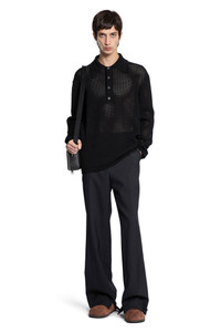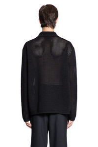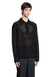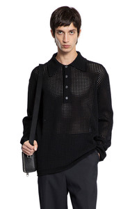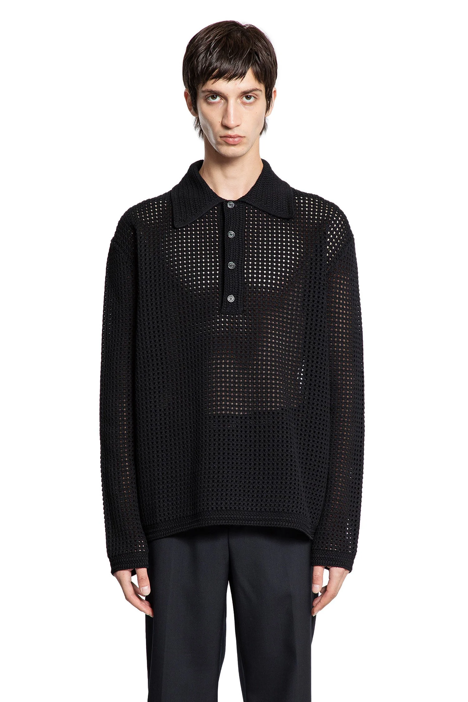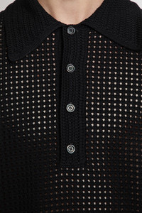 DESCRIPTION - Black - Crochet knit - Collar - Quarter-button closure - Dropped shoulders - Long sleeves - Ribbed hem and cuffs DETAILS - Made in: Italy - Composition: 60% Polyurethane 20% Polyester 20% Cotton - Model code: 827353XKEYQ 1000 - Item ID: 9760385007958 SIZE & FIT Model wears size M Model Height 186 cm Chest 89 cm Waist 72 cm Hips 90 cm