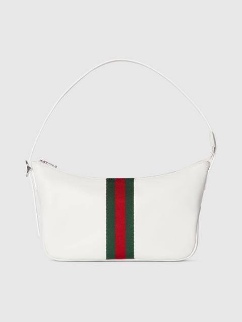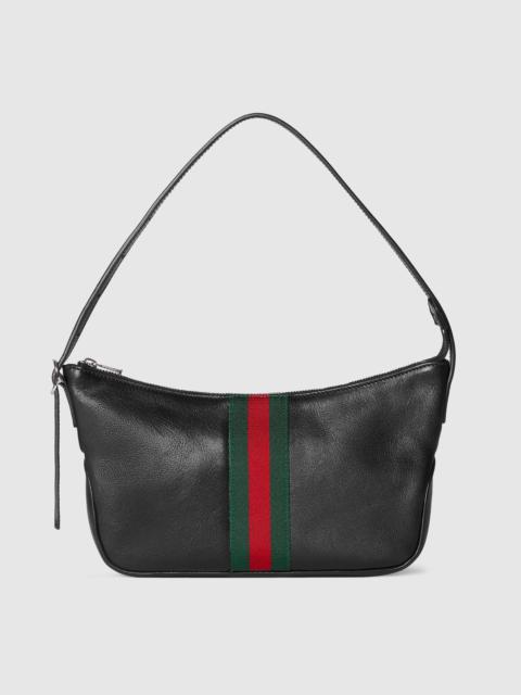 Introducing Spring Summer 2026. Lunetta, or little moon in Italian, is defined by its crescent shape and unisex attitude. This style is crafted from soft leather that has been carefully treated by hand using tools to create marks that give it a uniquely lived-in appearance. It can be carried crossbody with the detachable strap, or over the shoulder. - Dark brown soft leather, treated by hand using tools for a lived-in appearance - Silver-toned hardware - Green and red Web - Black canvas lining with Diamante motif - Detachable and adjustable leather handle - Inside: 1 zip pocket - 5.9" handle drop - Detachable and adjustable leather shoulder strap with 17.7" drop - Zip closure - 8.6"W x 5.1"H x 1.1"D - Weight: 0.4lbs, approximately - Made in Italy - Fits iPhone Plus, Airpods and small wallet