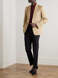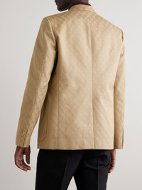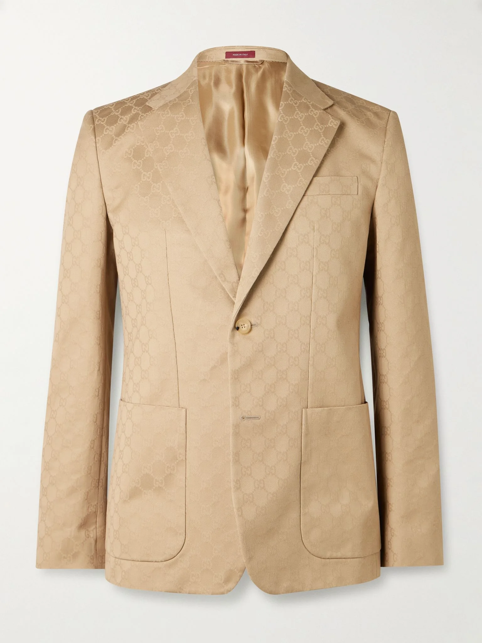 Marcello Slim-Fit Logo-Jacquard Cotton-Twill Blazer Beige