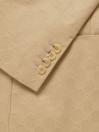 Gucci's 'Marcello' blazer is jacquard-woven with the iconic 'GG' monogram for a subtle, luxurious spin. It's been tailored in Italy from cotton-twill with wide notch lapels and is darted through the middle to draw in the waist. Size & Fit - Fits true to size. Take your normal size - Designed for a slim fit - Mid-weight, non-stretchy fabric - Model is shown wearing an IT 48 - Model measures: chest 38"/ 96cm, height 6'2"/ 188cm Details & Care - Beige cotton-twill - Notch lapels, functioning buttoned cuffs, chest welt pocket, two front patch pockets, single vent, internal slip pockets, fully lined - Two button fastening - 100% cotton; lining: 100% viscose - Dry clean