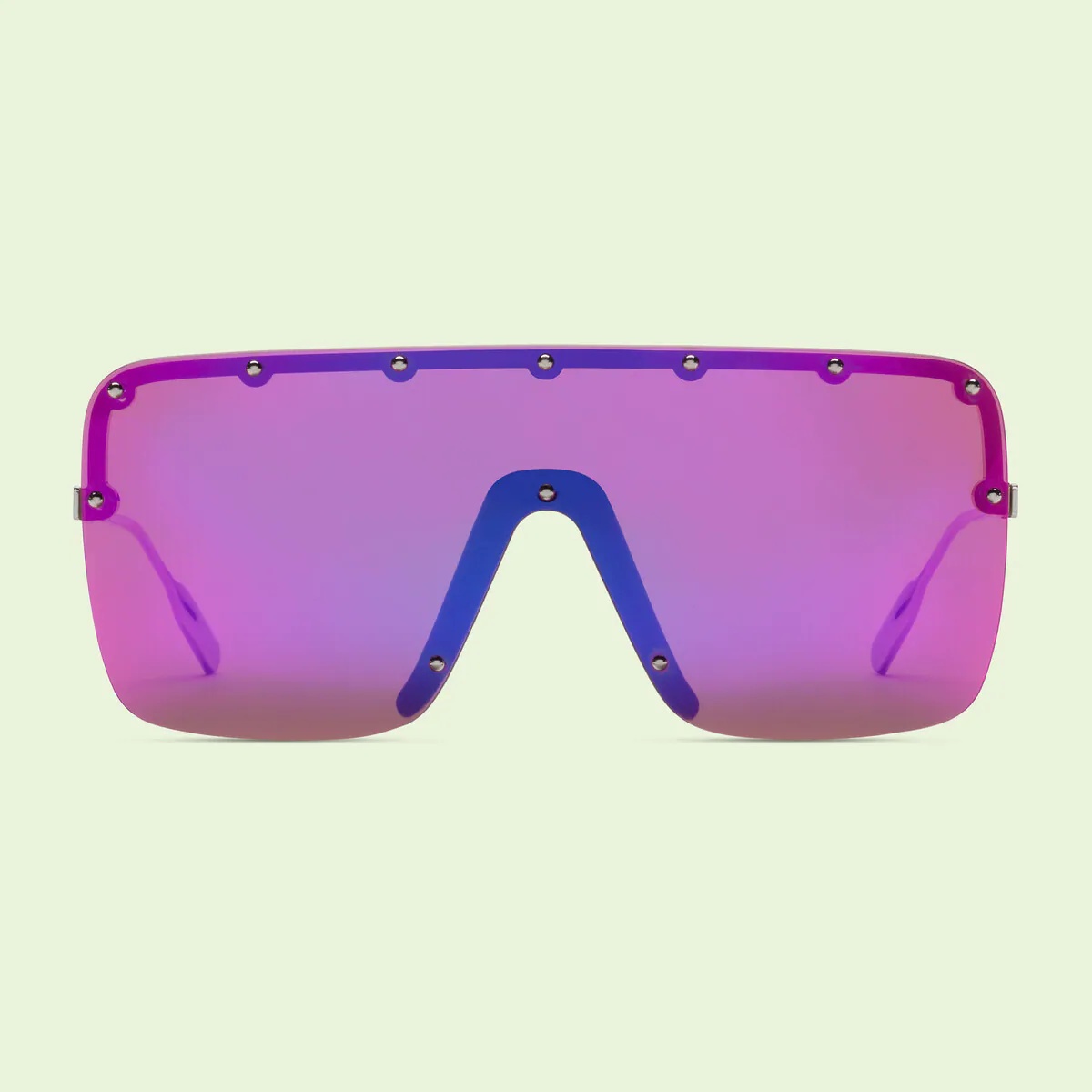 oversized-frame studded sunglasses purple metal oversize frame mirrored lenses stud detail logo plaque at the arm straight arms curved tips These glasses come with a protective case. Made in Italy Composition Metal (Other) 100% SIZE & FIT Measurement Arm Length 5.51 in(14 cm) Bridge Width 0.78 in(2 cm) Lens Diameter 5.9 in(15 cm) Total Width 5.9 in(15 cm)