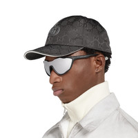 The Pre-Fall 2025 eyewear collection includes mask-shaped sunglasses with innovative shapes and striking color palettes. These mask-shaped sunglasses are presented with injection frames and a mirrored lens, enriched with a Gucci logo and metal end tips. - Matte black injection frame - Matte black injection temples with Gucci logo and metal end tips - Grey mirrored lens - 100% UVA/UVB protection - GG2018S - Temple length: 4.7"; Lens height: 1.8"; Nose bridge length: 0.3" - Frame height 1.9"; Frame width 5.6"; Hinge to hinge 4.7" - Made in Japan - The soft black pouch is complete with an elastic drawstring, the Gucci logo and Interlocking G details.